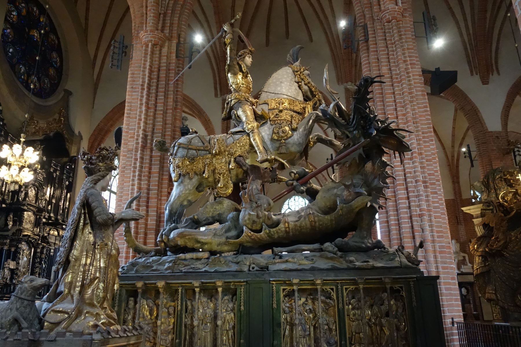 Ne râtez pas la visite de la cathédrale et son exceptionnelle sculpture médiévale en bois de chêne représentant Saint Georges terrassant le dragon sous les yeux de la princesse Elya.